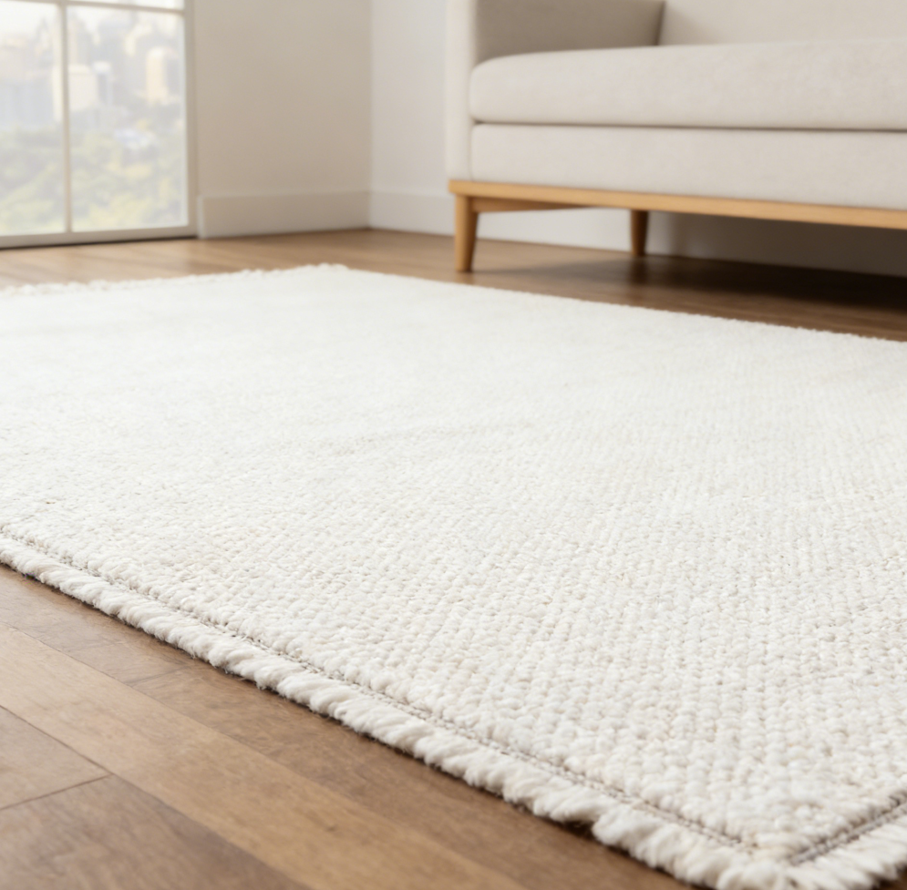 Ivory Handmade Wool Knitted Yarn Rug