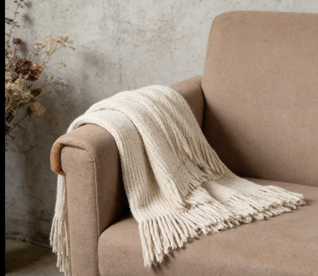 Cream White Boho Knitted Chenille Blanket (Pack of 3), 50″ x 60″
