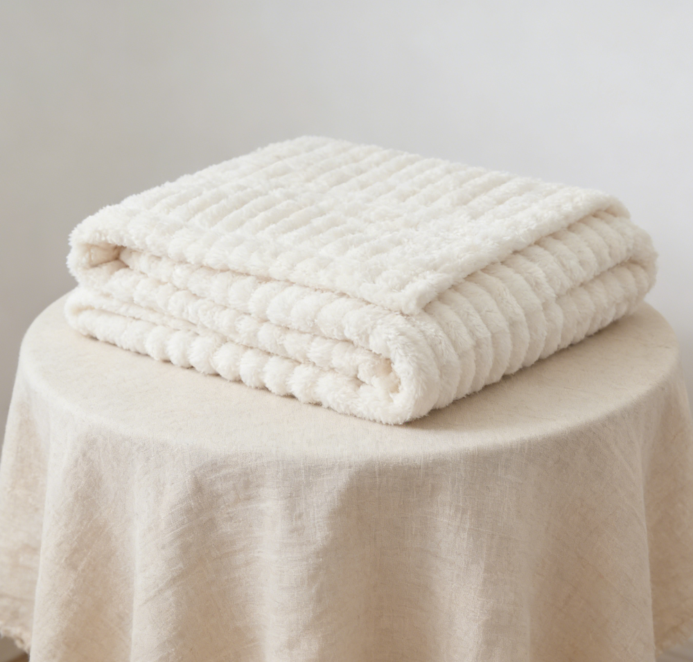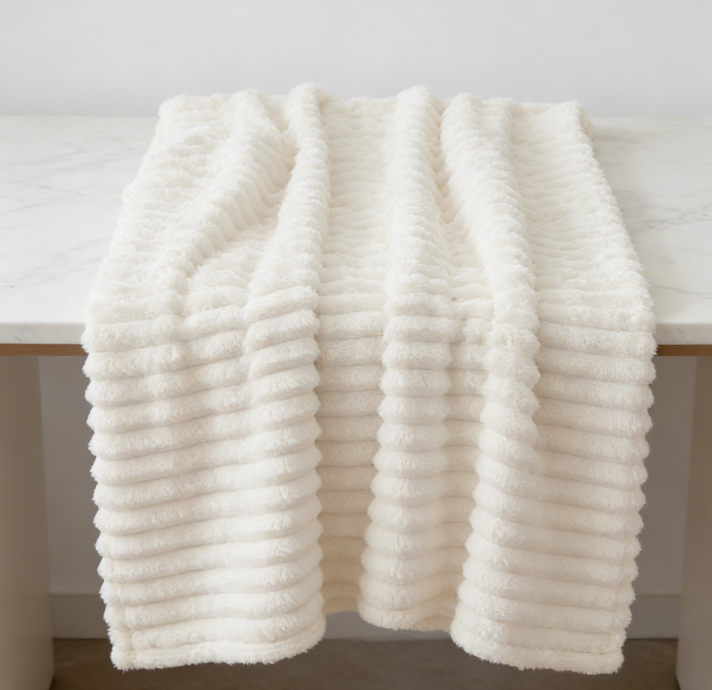 Cream White Striped Knitted Throw Blanket (Pack of 3), 50″ x 60″