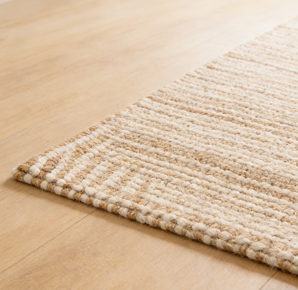 Ivory Handmade Textured Wool Blend Knitted Yarn Rug